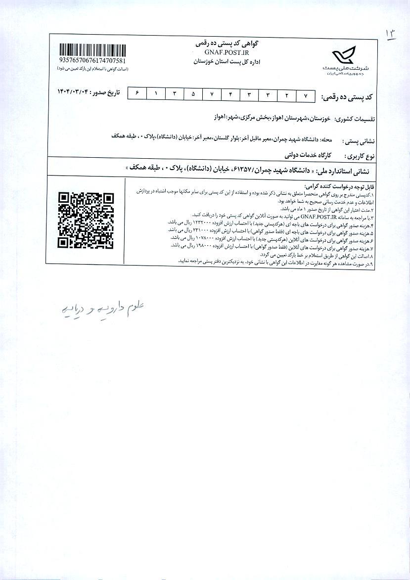مرکز تحقیقات علوم دارویی دریایی، دانشگاه علوم پزشکی جندی شاپور اهواز، اهواز، ایران